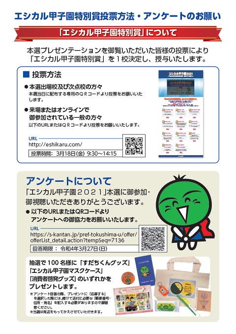 消費者教育支援センター後援 徳島県主催:3月18日開催「エシカル甲子園2021」特別賞投票のご案内