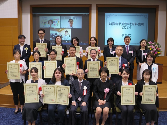 午前中開催の「消費者教育教材資料表彰式」には消費者庁長官新井ゆたか氏から内閣府特命担当大臣賞および消費者庁長官賞が授与されました。