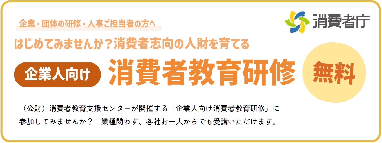 (本研修は消費者庁委託事業「事業者等における従業員向け消費者教育研修の実施・改善に係る業務」として実施します)