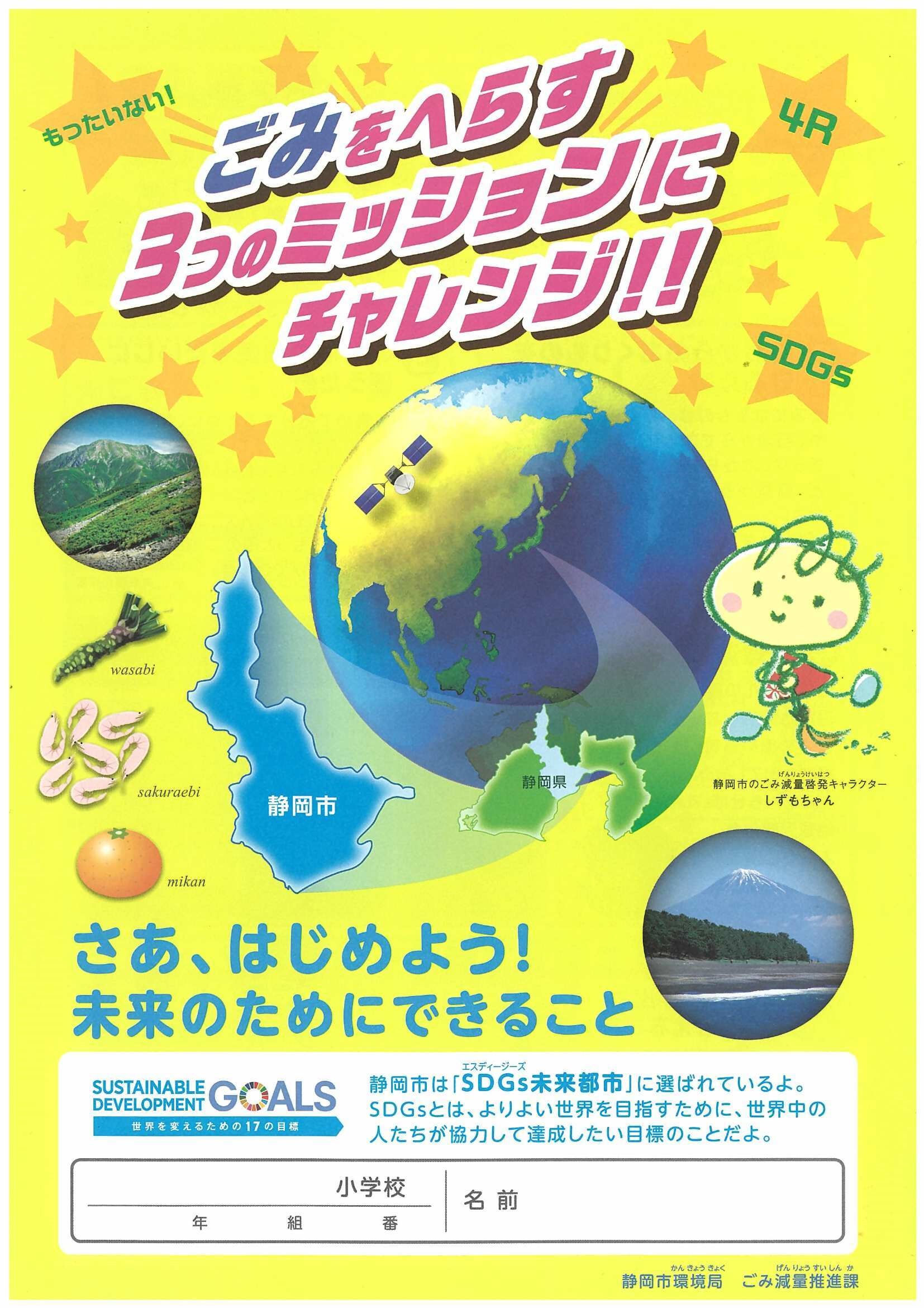 小学生を対象に作成されたごみ減量に向けた書き込み式のワークブック。全体は、小学校での体験学習、家庭実践後の記入し、最後は家族と一緒に振り返って評価するの3つのミッションで構成されている。学校から地域、家庭を巻き込んだ行動ができる児童を育成することにつながる内容である。