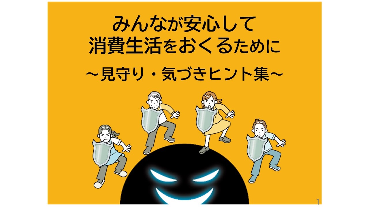 民生委員・児童委員、訪問介護員・介護専門支援員、相談支援専門員など、高齢者や障害のある方など配慮を要する消費者を支援する方々に向けた教材(DVD付属)である。さまざまな実例からの見守りの形態ごとに、気づきや疑い、声かけのポイント等をわかりやすく解説している。福祉を学ぶ大学生の授業でも活用が可能。