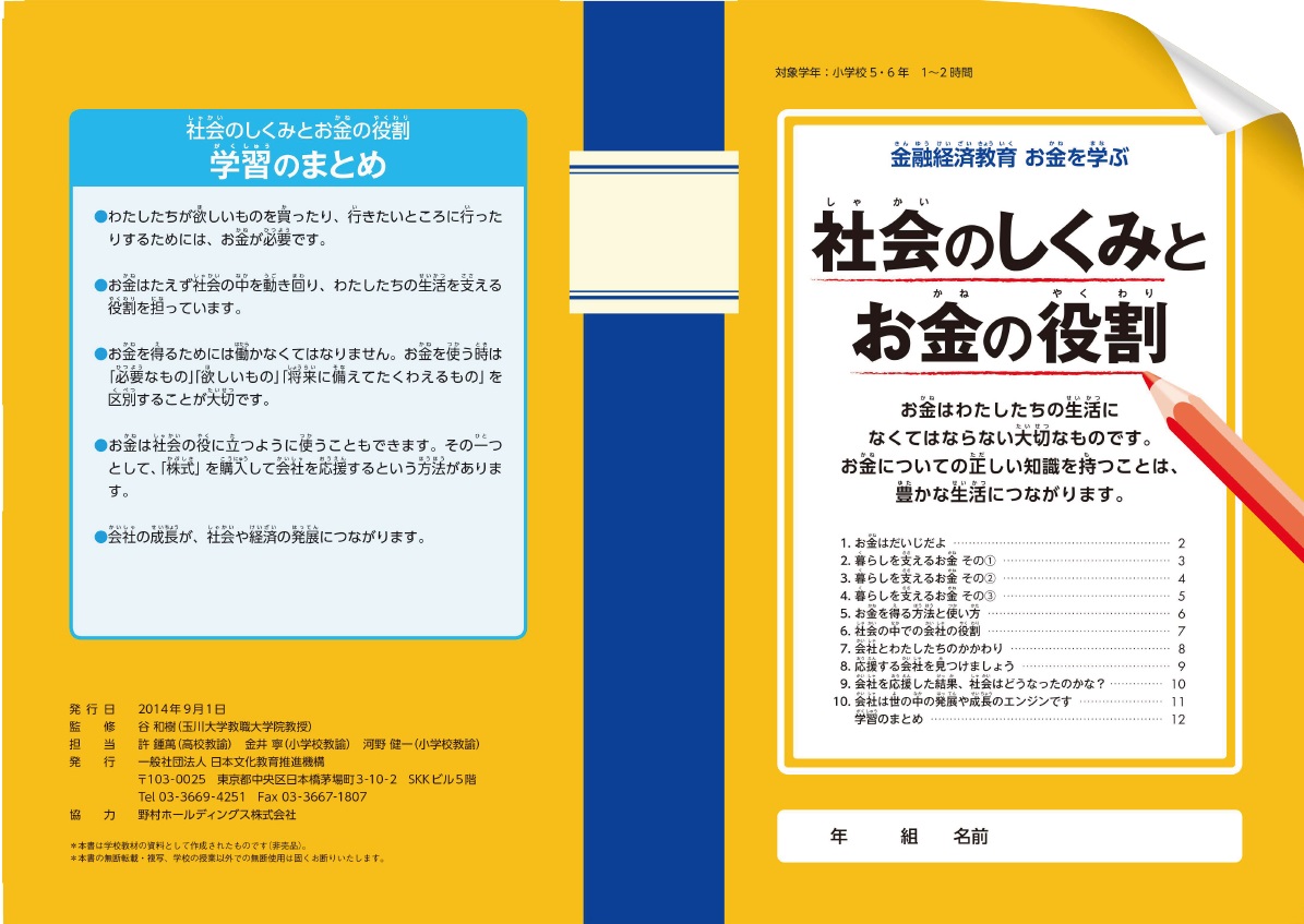 小学校5・6年生を対象とした金融経済教育の教材。1ページ1テーマでワークが設定されており、10テーマで構成されている。冊子でもデジタルブックでも学ぶことが可能である。デジタルブックでは画面上でタッチペン等で記入することができ、途中経過も保存できる。教員用の指導案、指導書も附属しており、内容も充実している。