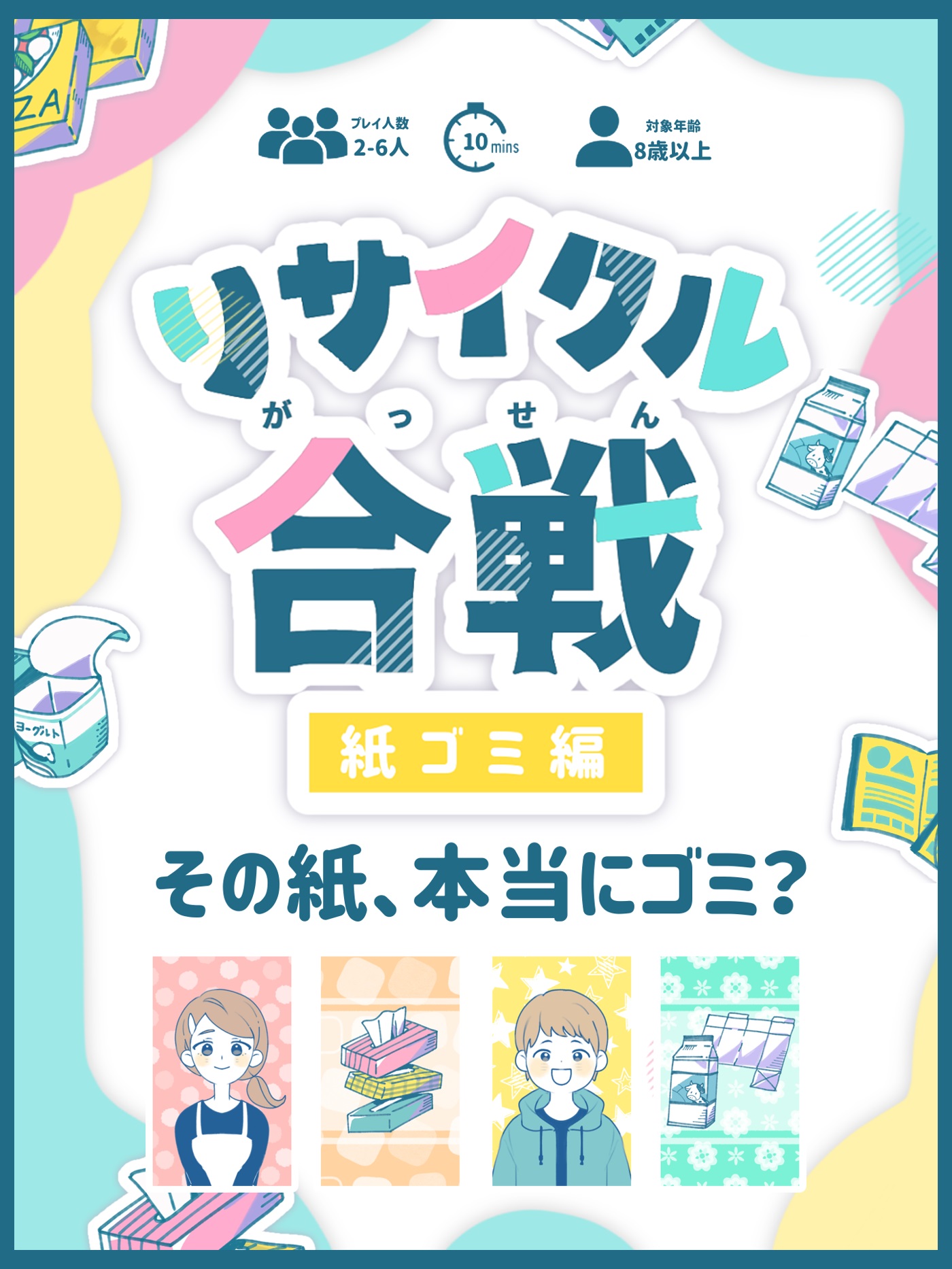 誰もが取り組みやすい紙ゴミの削減に取り組むために紙ゴミのリサイクル分別に関する知識を遊びを通して学ぶ教材である。ゴミ処理、資源循環、地球温暖化対策について考える授業の導入や振り返りに活用できる。ワークシートは低学年用と高学年用があり、絶滅危惧種や二酸化炭素削減の工夫を考える発展学習につなげることもできる。