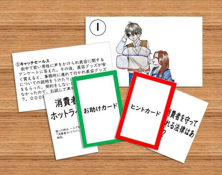 カードゲームを通して、消費生活の基本的な知識を学び、消費者トラブルを防ぐ力や持続可能な社会の構築に向けて行動する力を身に付けることをねらいとした教材で中学校の生徒たちが協力して作成している。消費者問題の事例を分析し、解決の方法を生徒が話し合えるように促す工夫が盛り込まれている。対象は中学生以上。教材はWebサイトからダウンロードできる。