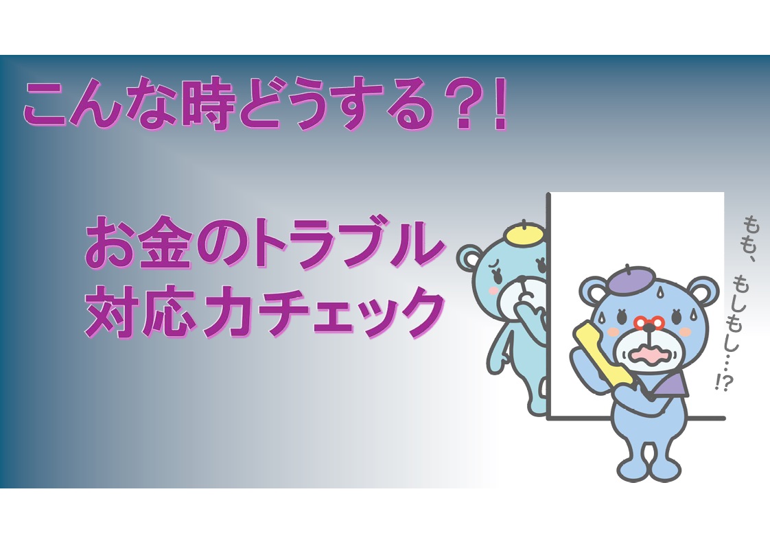 金融リテラシーをテーマに「18歳からもう成人」「デジタルのリスク!」「人生100年時代」の3本のドラマ仕立ての動画(各5分程度)。難しくなりがちなお金の話を金太ろうきん太がコミカルに解説する内容となっており、ワークシート(A4、2ページ)が付属している。Webサイトにおいて視聴可能。