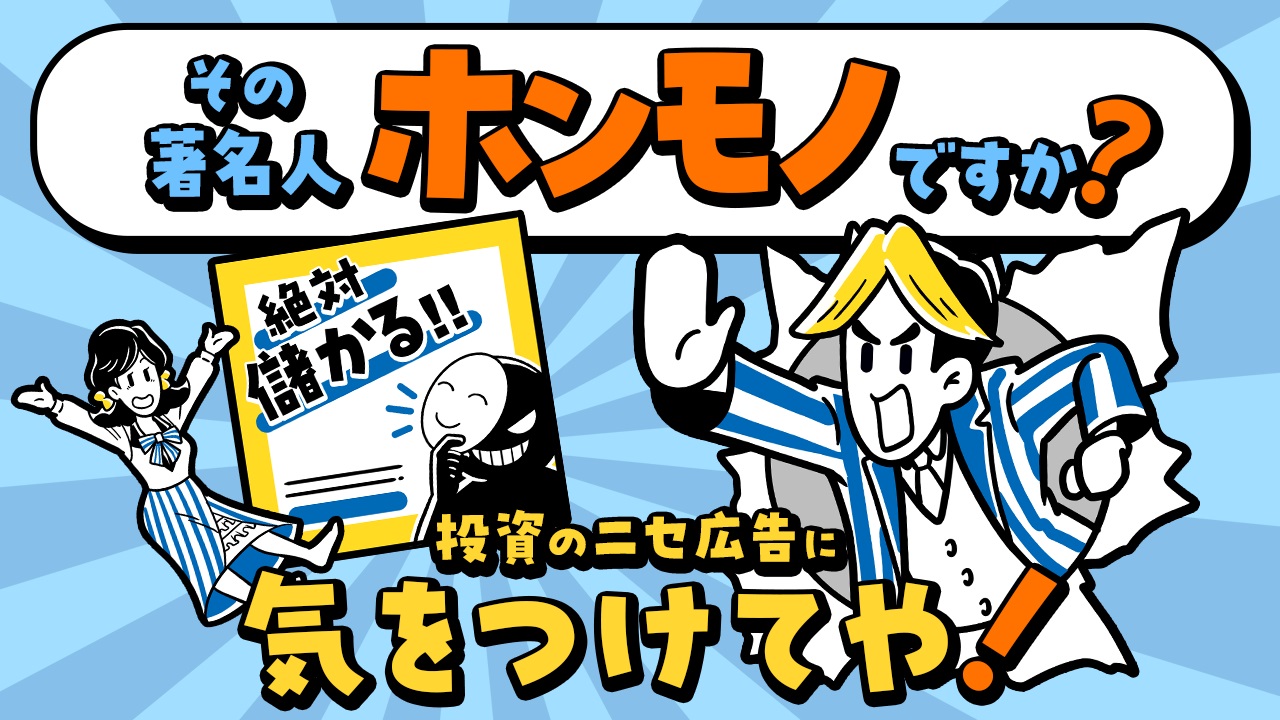 著名人の名前や写真を悪用した偽の投資広告によるトラブルの増加を受けて制作された、投資トラブル防止のための動画教材。投資や資産運用に伴うリスクについて、シンプルなイラストと漫才風のコミカルなやり取りを通して事例と注意点を分かりやすく紹介している。再生時間は約4分とコンパクトで視聴しやすい。Webサイトから視聴可能。