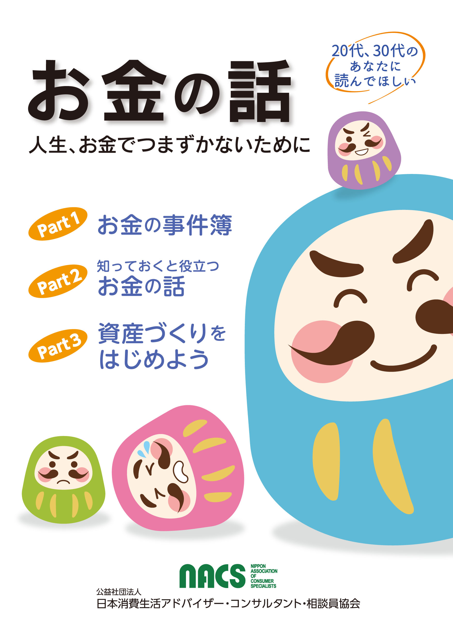 お金について学ぶことができる大学生など若者を対象にした冊子教材(A5、32ページ)。若者に多いトラブルを紹介する「お金の事件簿」、クレジットなどを学ぶ「知っておくと役に立つお金の話」、資産形成を考える「資産づくりをはじめよう」の3部構成になっており、図表やイラストなど分かりやすい。WebサイトからPDFダウンロード可能。