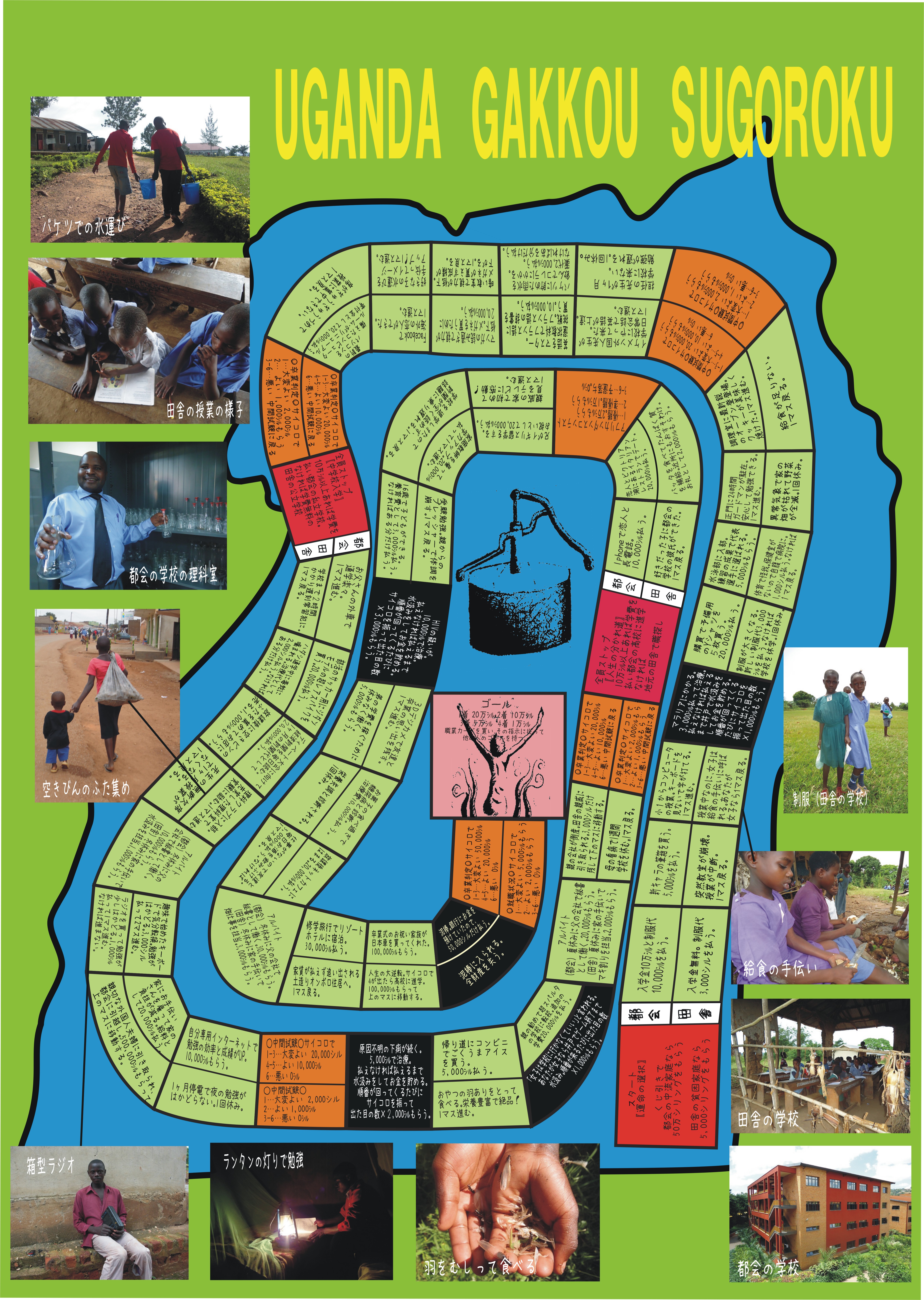 ウガンダのくらしから日本のくらしを振り返る国際理解教育のセット教材で、すごろくセット、教員用の授業展開のガイドとワークシート、フォトランゲージ用の写真があり、小学校から大人までと広く活用が可能。青年海外協力隊の派遣時に現地の教員や子どもたちとともに作成した教材で、教材を通してウガンダの田舎と都市の現実のくらしを体験することができる。