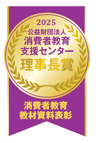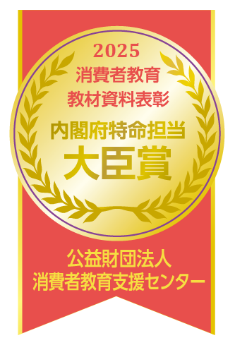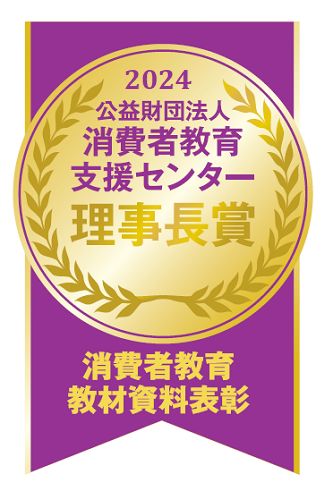 2022年(令和4年)消費者庁長官賞。学習指導要領の学習内容を踏まえて小学校用と中学校用のオンライン授業をサポートするWebコンテンツである。授業展開例や補助資料、児童・生徒用のワークシート、プレゼン資料や板書計画が揃っている。ワークシートは、児童・生徒の実態に応じて加工が可能。小学校5・6年「契約のルールについて考えよう!」では、教師の問いかけから児童にとって身近な物の購入について学ぶ展開となっており、カードなど見えないお金の働きについても学習できる。中学校教材では、「クイズ」や「疑似体験」などを取り入れ、4時間分の教材から実態に合わせて活用できる工夫もあり、動画も短く学びやすい。